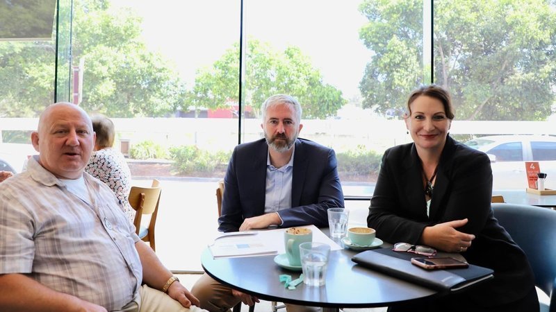 (Pictured L-R: George Helon (Carer), Senator Anthony Chisholm (ALP), and Gen Allpass, Candidate for the Federal Seat of Groom (ALP): Toowoomba; Tuesday 19 April 2022).