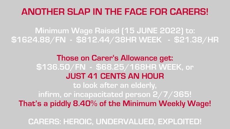 Carers continue to be undervalued and exploited worse than slave labour and sweatshops which are against human rights!