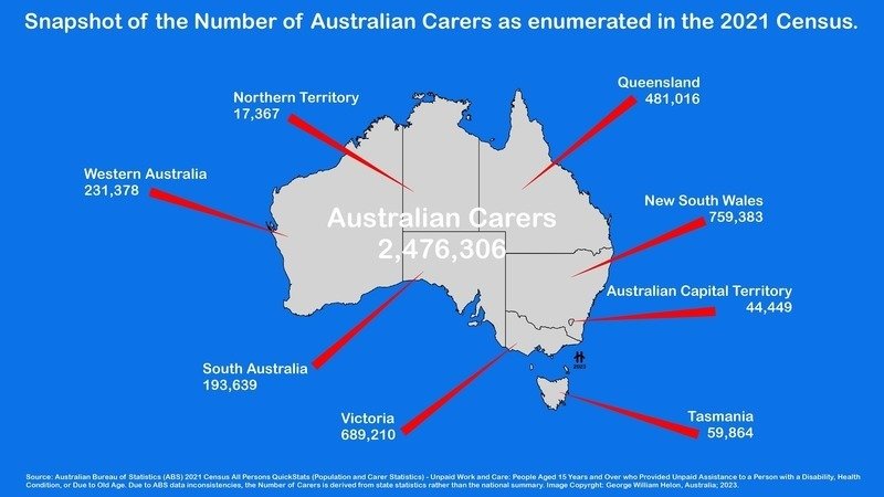 And according to the Australian Bureau of Statistics (ABS) Census data, in 2021 (based on aggregate state and territory data) there were 2,476,306 carers in Australia.