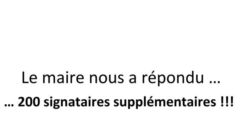 Néanmoins, un grand merci…. La pétition avait collecté un peu plus de 600 signatures à la fin de la concertation. Votre réponse a sollicité 200 signatures supplémentaires. Rien que pour cela, MERCI !
