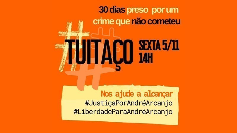 Participe AGORA do tuitaço pela Liberdade de André e levante a sua voz para demonstrar indignação à prisão, notoriamente INJUSTA de mais um homem negro inocente neste país!