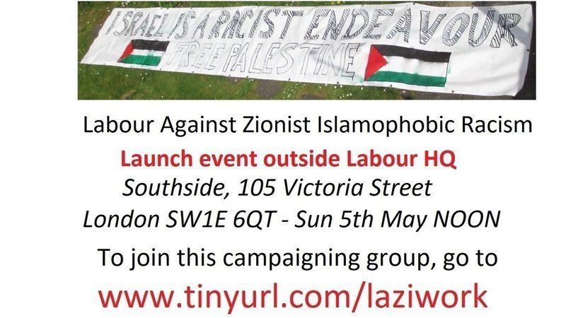The plan was always to get the aims and policies of our new group Labour Against Zionist Islamophobic Racism (LAZIR) discussed at the LAW meeting on the 4th May and to launch it afterwards, whether they supported it or not. The last time I sought LAW support for a project of mine was when I asked them to support this petition in December. One of the reasons they refused was because they said I did not seek their comment before floating the petition, and so it was too late to change it. Therefore, I decided to get comment and explore modifications from LAW members BEFORE I sought their approval, by submitting a draft text. (Read it here) Either way, by 5th May I shall have LAZIR policies in a shape that LAW might be most likely to support. And so, I want to invite all of you to the LAZIR launch event. I shall display the banner in the photo above outside Labour HQ’s offices at Southside, 105 Victoria Street, London SW1E 6QT on Sunday 5th May at 12 noon. Please come along and hear the launch and help me take photos to send to the press that has more than just me in them. Your support will be much appreciated; email me at postmaster@roseburn32.plus.com if you can make it