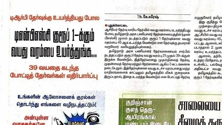 One of the famous Tamil News paper published our request for Increasing Age For TNPSC Gr1 Exam.