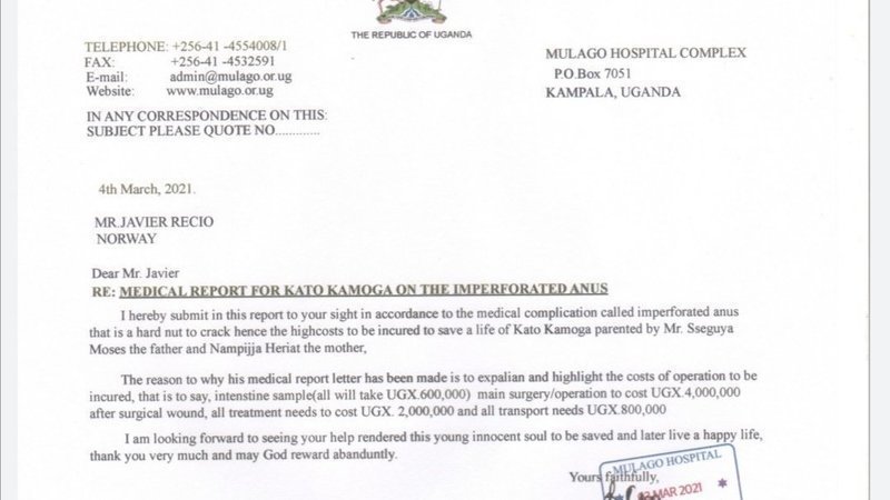 Aquí incluyo el informe y el presupuesto médico elaborado por el doctor Nkukunda del hospital de Mulago, en Kampala