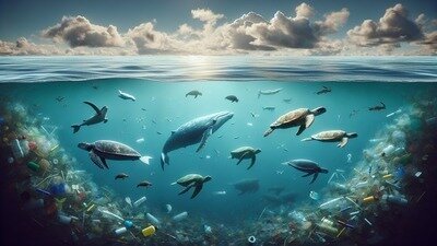 Over 8 million tons of plastic waste enter our oceans every year, causing suffocation, entanglement, and poisoning for sea animals.