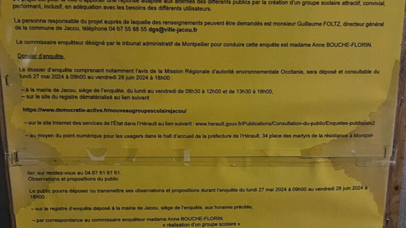 Atualização do abaixo-assinadoA Jacou (34830), l'avis des citoyens Jacoumards doit compter !Avis d'enquête publique en ligne ... à vos claviers !
