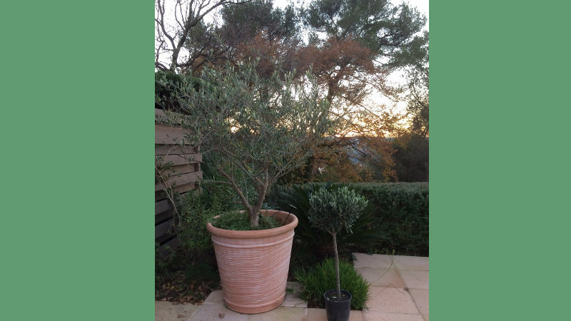 Ce matin Pierre-Alain m'a apporté cet Olivier. Il l'a posé près de l'olivier que j'ai planté au moment du décès de son Papa et qui est en pot car je veux le garder toujours avec moi, même si je déménage. Cela fait 7 ans, il vit avec moi. L'émotion était forte.