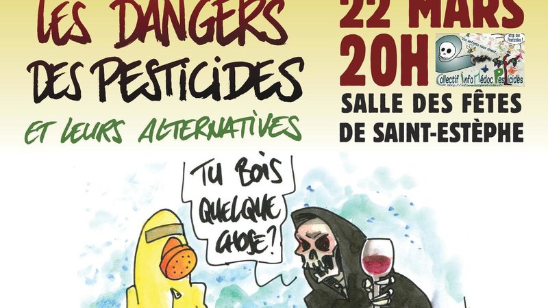 Le Collectif Info Médoc Pesticides a le plaisir de vous convier à sa soirée débat annuelle qui aura lieu le 22 mars 2017 à 20 heures, salle des fêtes de Saint-Estèphe dans le Médoc (33).