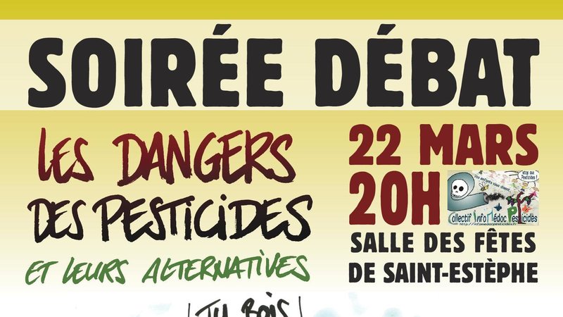 Je vous rappelle la tenue de la soirée débat annuelle du Collectif Info Médoc Pesticides, le mercredi 22 mars à 20H en la salle des fêtes de Saint-Estèphe (dans le Nord Médoc). Le thème retenu cette année est celui des Alternatives, elles existent contribuons à les faire connaître !
