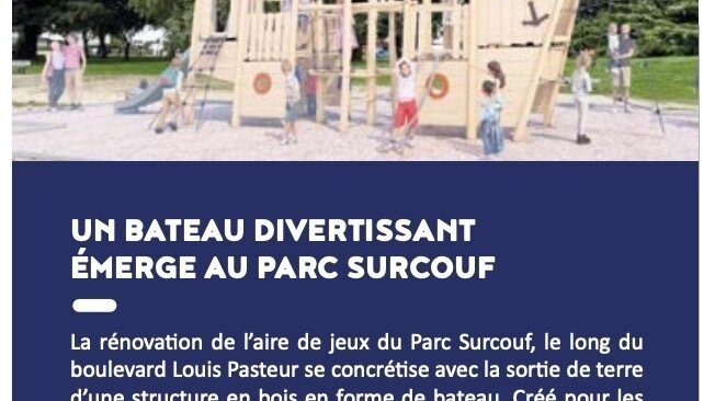 Pour information, le Bruz Mag de janvier–février confirme la rénovation de l’aire de jeux du Parc Surcouf, avec l’installation d’une structure en bois en forme de bateau ainsi que de nouveaux jeux pour enfants. 🚢🛝