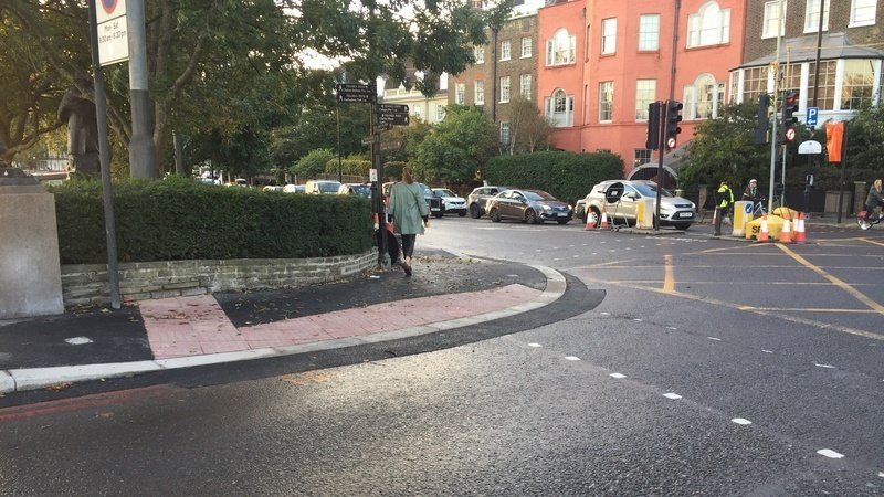 - matching paving has not been fitted on the newly changed sections of pavement because of the timescale of this job. The two boroughs only gave TFL a window of seven days, so its officers instructed Conway to use tarmac in order to "expedite" the works within the allowed timeframe. TFL has set aside the budget to return to the site to lay new paving at a later date. This may even take place as late as Phase 2 (installing crossings on other arms of the Cheyne Walk crossroads) to avoid added disruption at this busy intersection.*