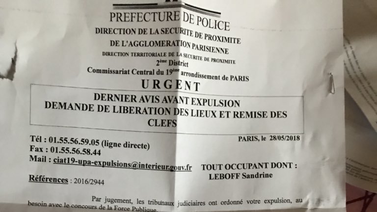 Le Préfet de Police de Paris a refusé de repousser l'expulsion malgré la Loi #DALO et l'état de santé de ma mère ( à ce jour sa cicatrice n'est toujours pas refermée, beaucoup d'éléments y ont contribué ).