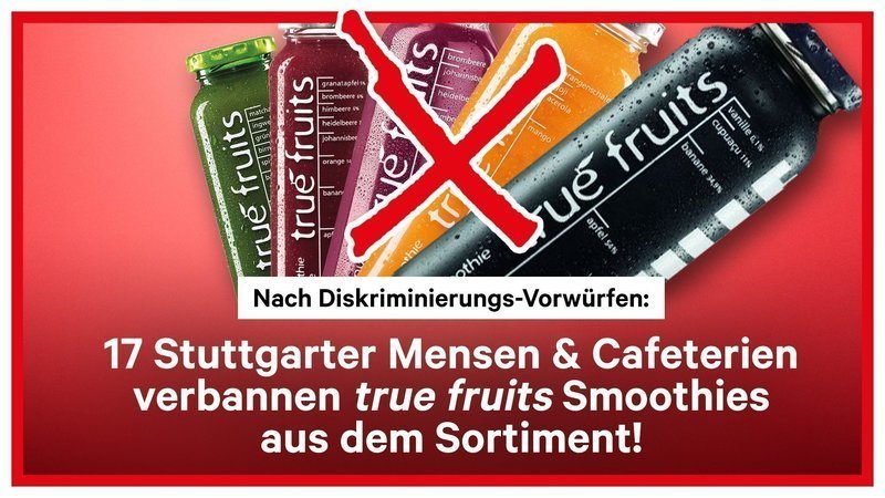 „Es ist bekannt, dass true fruits in seiner Markenkommunikation regelmäßig auf Provokation setzt und polarisiert. Darin sehen wir grundsätzlich nichts Verwerfliches. [...] Ob ein Unternehmen aber, um Aufmerksamkeit zu generieren, gezielt Grenzen überschreiten muss und damit bewusst einkalkuliert Menschen zu verletzen, stellen wir in Frage. Zu provozieren, sich dann aber der angestoßenen Diskussion nicht konstruktiv zu stellen, zeugt von wenig Größe. Wer seine Kunden bzw. Kritiker als ‘Pissnelken’ und ‘Dumme’ tituliert, offenbart ein Menschenbild, das wir nicht weiter mit dem Verkauf seiner Produkte unterstützen wollen.”, so das Studierendenwerk Stuttgart via Pressesprecherin Anita Bauer.
