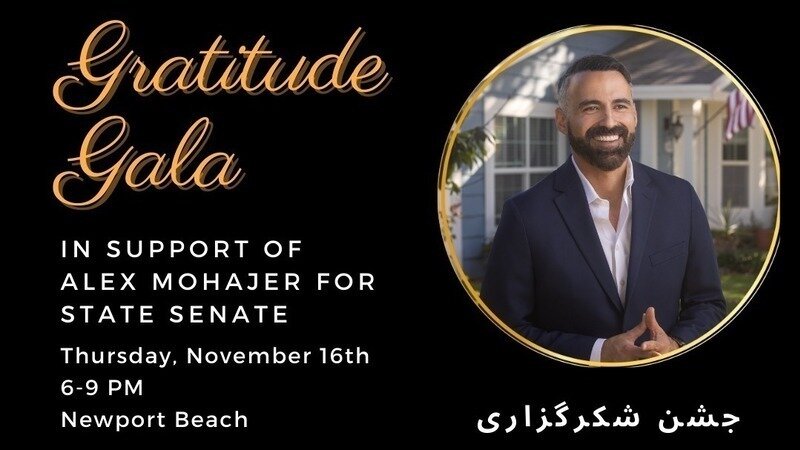 Join us for an exciting evening at the Gratitude Gala as we come together to celebrate the Thanksgiving season, fight back against Trumpism, and support Alex Mohajer in his incredible grassroots campaign for CA State Senate. This in-person event will be held in the beautiful city of Newport Beach, CA at the Crystal Cove Shopping Center. RSVP using the ticket link for exact location and address details.