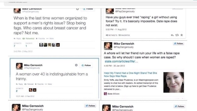 REMOVE MIKE CERNOVICH FOR HIS RAPE-ENTHUSIASTIC TWEETS. Fairness for all.