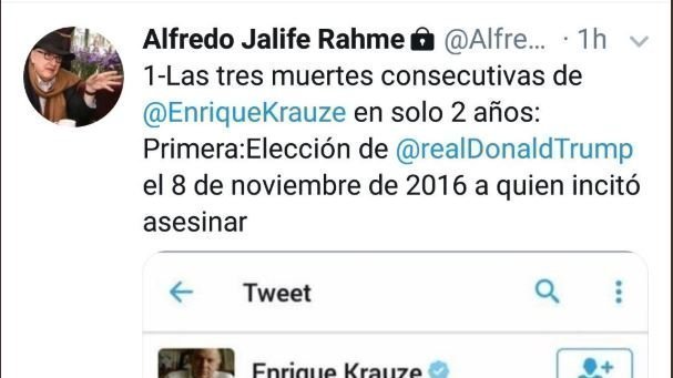 HAN CENSURADO DE TWITTER AL DR. ALFREDO JALIFE RAHME INJUSTAMENTE YA QUE HABLÓ CON LA VERDAD EN CONTRA DE LA CORRUPCIÓN DE ENRIQUE KRAUZE Y FELIPE CALDERÓN