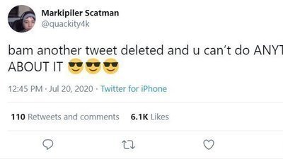 Twitter would be a way better place if Quackity (twitter user @quackity and @quackity4k) didn't delete his tweets within 5 minutes of posting them. For far too long, followers of this user have dealt with trying to reply to his tweets and getting the message "Can't reply to a deleted tweet".