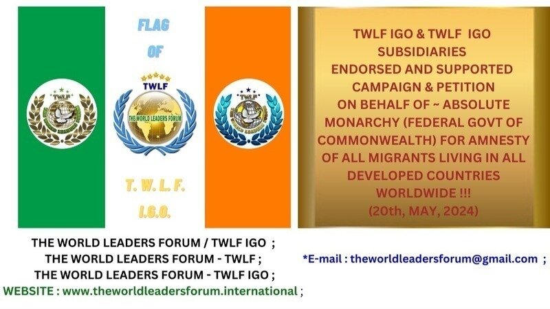 TWLF IGO RECOMMEND ~ GRANT AMNESTY FOR MIGRANTS IN ALL DEVELOPED COUNTRIES (20/05/2024)