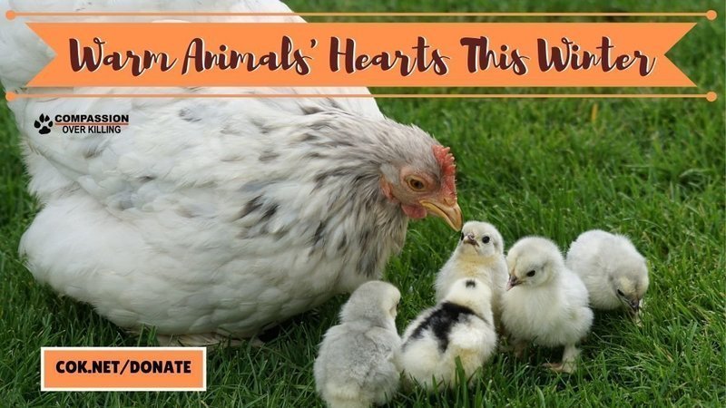 Winter’s upon us -- and you can help us warm animals’ hearts all season long! Compassion Over Killing’s gearing up to keep holding poultry giant Tyson Foods accountable for cruelty in its supply chain throughout 2019. Donate to our critical work TODAY and your gift will be MATCHED dollar-for-dollar!