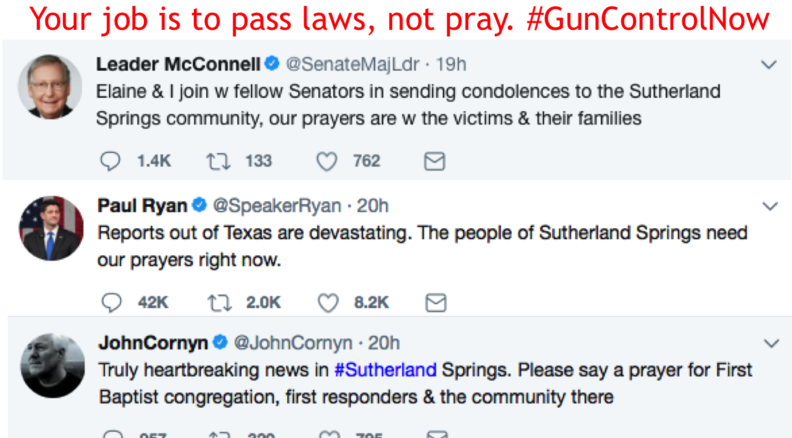 Sutherland Springs set new record, "the worst mass shooting in Texas history" and what are we hearing from the GOP? The President said it's not a "guns situation." House Speaker Paul Ryan wrote on Twitter. "The people of Sutherland Springs need our prayers right now."