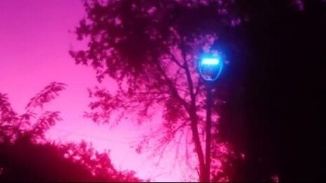 This infrared photo of an LED streetlight at sunset highlights the extreme danger of blue-rich LED streetlights and LED headlights.