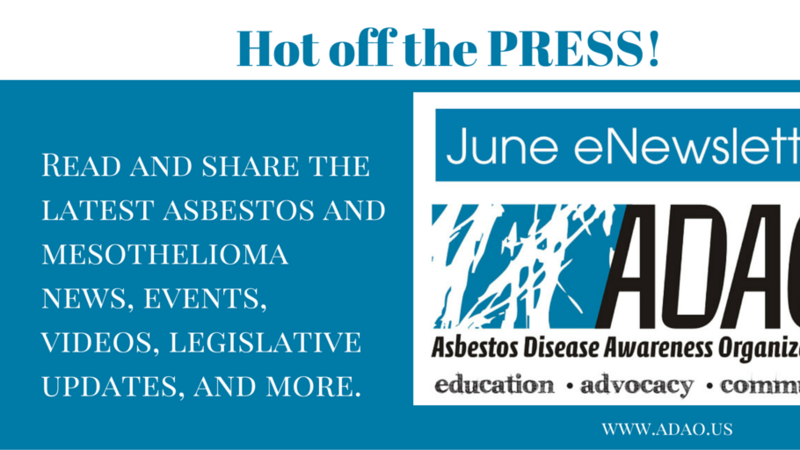 Thanks to you, our early response has been terrific and Change.org emailed "Only 15% of petitions reach this level of support." Stay updated by reading and sharing the Asbestos Disease Awareness Organization June 2017 eNewsletter. http://conta.cc/2stCH4n