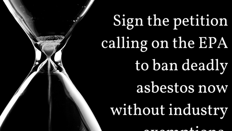 Petition updateBan Asbestos in the US Now, Without Loopholes or ExemptionsNew research estimates annual asbestos-caused deaths have doubled from 15,000 to nearly 40,000.