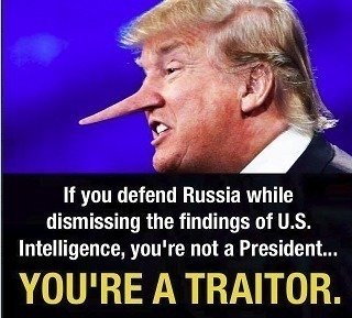 Donald Trump just keeps on defending Russia no matter what our Intelligence agency's say, He might as well be in the KGB and not a US President, Over half of the United States citizens voted against him, now citizens that voted for him realize they have been fooled into voting for him and also want his head on a platter!! WHAT DOES THIS SAY TO AMERICANS WHO GAVE THEIR LIFE FOR OUR FREEDOM??? I KNOW MY FATHER, UNCLES,FATHER IN LAW AND MANY OTHERS ARE TURNING OVER IN THEIR GRAVES KNOWING THIS!!!
