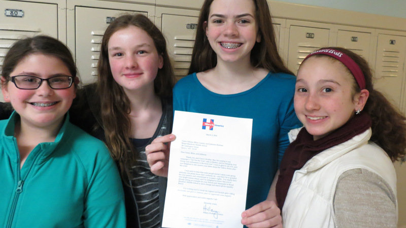 “I was very sorry to hear that some people haven’t taken your group, The Yellow Roses, seriously, but please know that I certainly do – and that I’m so grateful for your passion and commitment to women’s rights. You clearly have very bright futures ahead, and I’m delighted to know that you’re already setting an example for your friends and classmates at Broad Meadows Middle School to drive change and stand tall for equality.