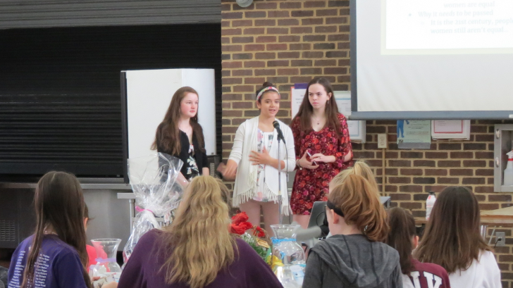 (photo shows three of The Yellow Roses delivering the Keynote Address at the 5th Annual Shoreline Girls Leadership Conference in Guilford, CT last week. The Keynote was a "Call to Action" to finally pass and ratify the ERA. )