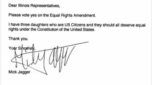 Actualización de la peticiónRatify the Equal Rights AmendmentLizzie and Mick Jagger urge YES votes on Ratifying an Illinois ERA