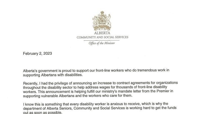 Further long-term funding will be determined in the upcoming Budget on February 28", 2023. I have been working in partnership with disability advocates across the province including Alberta Council of Disability Services, Alberta Disability Awareness in ACTION, and many others to ensure we have a strong social sector in the years to come.