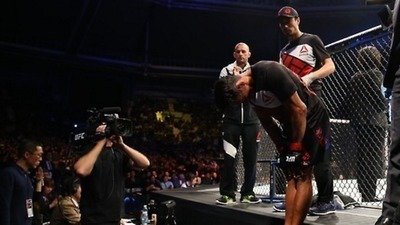 Last Saturday, the UFC Fight Night 79 at Olympic Gymnastics Arena in Seoul was held. Yoshihiro Akiyama went up against Alberto Mina. In the final round, it was evident that Akiyama was clearly the superior fighter; Mina was unable to fight and it was difficult for him to stand up.