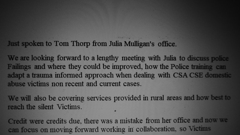 We are looking forward to a lengthy meeting with Julia to discuss police Failings and were they could be improved, how the Police training can adapt a trauma informed approach when dealing with CSA CSE domestic abuse victims non recent and current cases.
