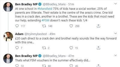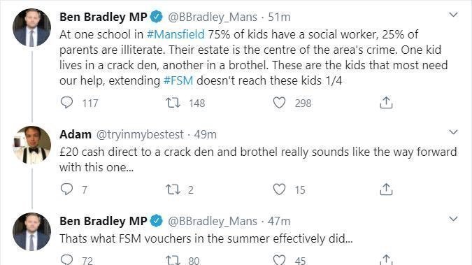 Ben Bradley used his platform as an MP to insinuate that money intended to provide Free School Meals to the most vulnerable children in our society would instead be spent 'in crack dens and brothels'.