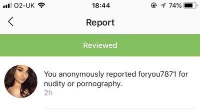 I reported the account (@foryou7871) and about an hour later I received a message from Instagram that read: "while we reviewed the account you reported for nudity or pornography and found it does not violate our Community Guidelines, reports like yours are an important part of making Instagram a safe and welcoming place for everyone."