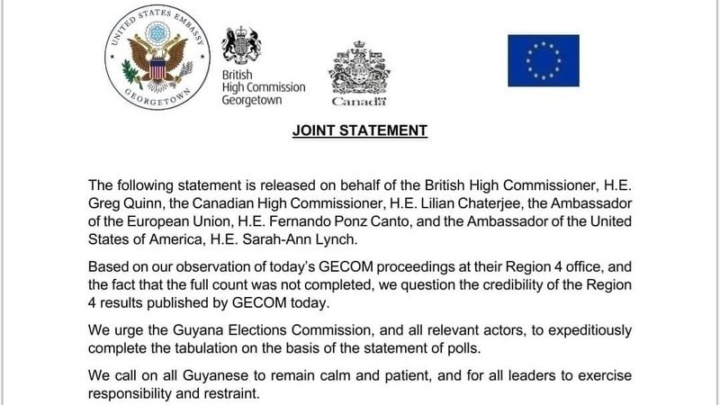 Some signatories said it was confusing using Recognition In the title as if we are accepting of the travesty being enacted in Guyana so I have updated it. This mornings forced removal of the remaining observers and opposing party members by the riot squad from the election commission puts an even brighter spotlight on the now unattended SOP’s yet to be verified and tabulated. This break in the chain of custody leaves the door open to those to fully conflate the remaining GECOM evidence to suit theIr arrogant intentions! Please keep sharing and spreading awareness to prevent further atrocities!