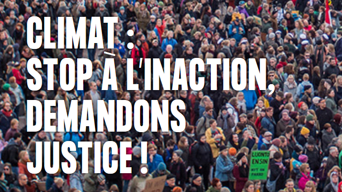 Nous vous invitons à appuyer et relayer le recours en justice contre l’État français porté par quatre associations (Notre Affaire à Tous, la Fondation pour la Nature et l’Homme, Greenpeace France et Oxfam France) au nom de l'intérêt général : https://laffairedusiecle.net/