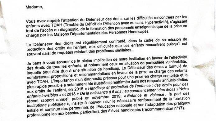 Petition updateUne égalité des chances pour nos enfants TDAH!REPONSE DU DEFENSEUR DES DROITS A NOTRE COURRIER DE DECEMBRE