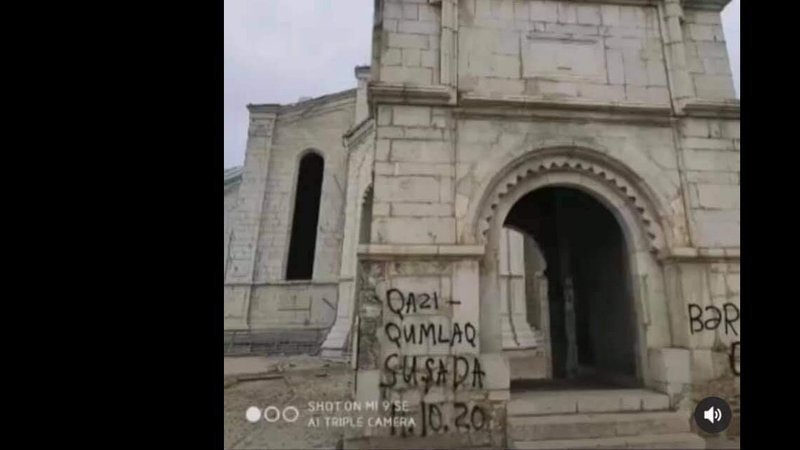 Vandalism has been done by the Azerbaijani forces on the walls of the Holy Savior Ghazanchetsots Cathedral in Shushi, the pearl of Armenian Christian cultural heritage in Artsakh!