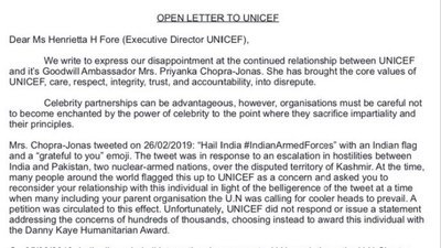 Remove priyanka jones chopra from being a ambassador for UNICEF