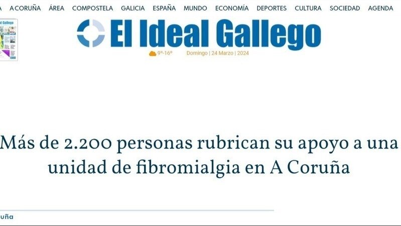 Petition updateUnidad de Fibromialgia en Galicia (A Coruña)Reportaje en Ideal Gallego y 2400 gracias!