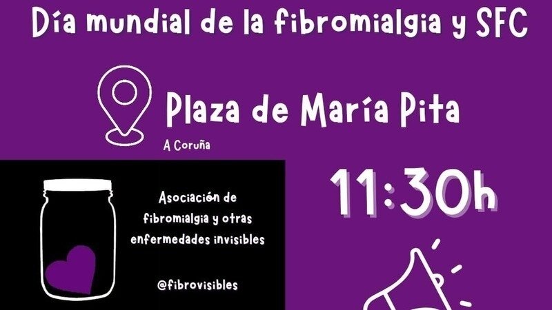 Este año, como asociación de carácter autonómico, desde Fibro Visibles estamos encantad@s de poder convocaros a la concentración fijada para el Dia mundial de la fibromialgia y SFC, el lunes 12 de mayo a las 11.30h en la Plaza de María Pita, A Coruña.