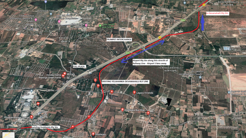 Right now, a Passenger train takes 30 minutes to cover 26 kms to reach Doddajala (see figure) from Yesvantpur (via Lottegollahalli, Kodigehalli, Yelahanka and Bettahalasur). A fast non-stop train can cover this distance in less than 20 mins. Similarly, a train from Byappanahalli can reach Doddajala well within 40 mins. And both Yesvantpur and Byappanahalli already have adjacent Metro connectivity.