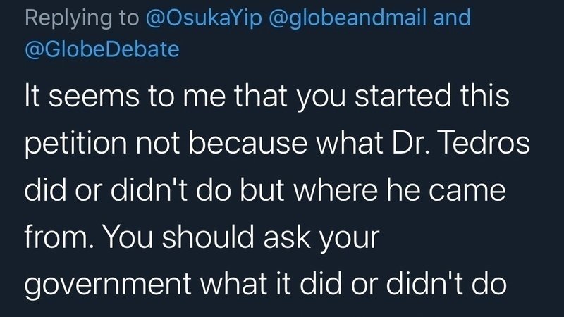 First of all, this petition was started on January 31st, 2020, before all the chaos start. It was a message to UN because we believe Tedros Adhanom Ghebreyesus is not fit for the WHO. At the time, the virus was still mostly in China and only a few cases outside of China. It was still preventable (up to date there has been 70,525 deaths globally) if anyone up there was listening.