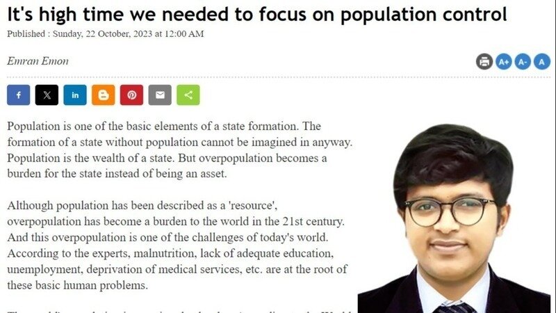 Hopefully, Bangladesh has recently become one of the least successful developing countries in reducing population growth. Despite this achievement, population is still a big problem in Bangladesh. Because the rate of population density is the highest here. According to a statistics, the population of Bangladesh is increasing by four per minute. 60.7 percent of the world's population lives in Asia. Deficits in turning the population into wealth are having a negative impact on our socio-economic life.
