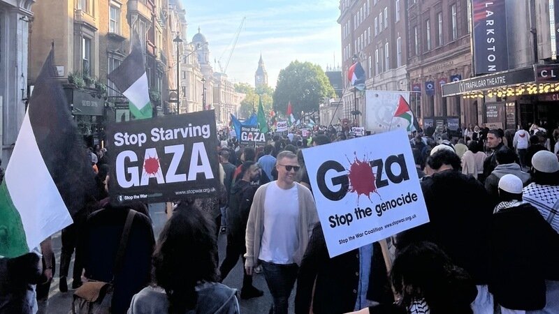 From all over we came and marched in London today - one of the biggest marches for Palestine in the blazing sun and blue skies! Young and old marched in our support for All Palestinians!