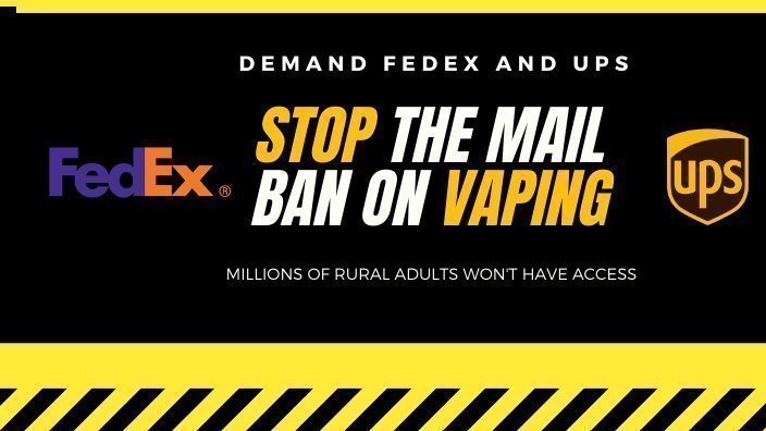 This vape mail ban is against our rights as American Citizens. It's imperative that we have our voices heard. You can watch all our rights be taken away as adults using a safer smoking cessation device, or stand up and have YOUR voice heard. Together we can make them listen. So, I implore you to stand up and be loud. Remind UPS and FedEx who their customers are and that we do not AGREE with their decision to stop the mailing of adult vaping products.