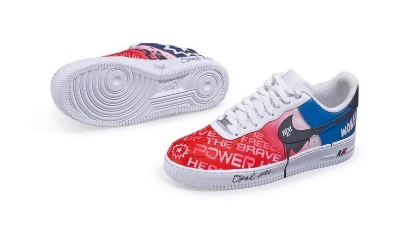 The bold sneakers feature song lyrics from Brim's single, "Hard to Believe" and symbolic imagery, which includes the official Juneteenth flag, and the Black Power raised fist emblem, a nod to timeless, silent protest at the 1968 Olympic Games in Mexico City when sprinters Tommie Smith and John Carlos hoisted their clenched fists while accepting their medals. It also features the number "2.23" across the toe box in memory of Ahmad Arbery, the unarmed African-American man pursued and fatally shot while jogging in Georgia.