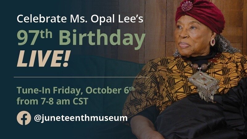 This Friday, October 6, 2023, we will say Happy Birthday to the Grandmother of Juneteenth, Dr. Opal Lee. Please join us online and ask your friends and family to continue to sign the petition to show the support and relevance of the Juneteenth holiday. We'd like to have 3 Million signatures by Juneteenth 2024. If you wish to give a donation of $6.19 to the building of the National Juneteenth Museum, you can TEXT 619 to 52014.
